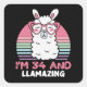 Adesivo Quadrado Engraçado Adorável Llama 34º presente de aniversár
