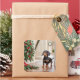 Um adesivo humorístico para o Natal com uma fotografia de um adorável dachshund. O filhote bonito está olhando para o sagrado festivo, com a legenda 'Dachs the Hall with Boughs of Holly'. Adicione o adesivo a presentes embrulhados, envelopes, convites e cartões de agradecimento por um florescimento extra com charme canino. Claro que apelar aos amantes do cão, este adesivo divertido trará um sorriso para a família e amigos nesta temporada de férias