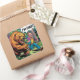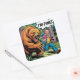 Adesivo Quadrado Engraçado, "Estou bem". Bear Chase Cartoon Ilustra