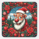 Adesivo Quadrado Engraçado Papai Noel com terra e ornamentos