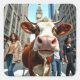 Adesivo Quadrado Engraçado Vaca Selfie em uma Rua da Cidade Ocupada
