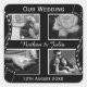 Folha branca e preto clássico de rolo de casamento. Carregue 4 fotografias para celebrar o seu relacionamento e partilhar com amigos e familiares. Detalhado com bobinas de película curvas nos lados. Parece excelente com fotografias a preto e branco ou coloridas.