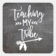 "Ensinando minha tribo" uma escrita engraçada de tipografia branca, cita em fundo de quadro-negro. Poderia fazer um bom presente para seu melhor professor no dia da apreciação ou quando voltasse para a escola.