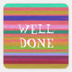 Um design de abstrato de pintura horizontal em faixas do arco-íris de cor rosa, turquesa, azul, verde e amarelo com um slogan Bem Feito adequado para um professor usar.
