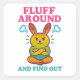 Este design fabuloso e feroz apresenta um coelho listrado no arco-íris sentado de pernas cruzadas, com braços cruzados, a vapor a soprar de ambos os lados da sua cabeça. Com uma paleta de cores arrojada e vibrante, este coelho pode ser fofo — mas claramente não está aqui para jogar. Por cima e por baixo, o slogan "FLUFF AROUND AND FIND OUT" faz com que fique claro: suavidade não significa submissão. Perfeito para os audazes, os orgulhosos e os desligados.