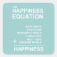 Esta Equação da Felicidade foi inventada pelo designer gráfico para InspirationzStore. felicidade, equação, fórmula, feliz, psicologia, positiva, pensamento, espiritual, espiritualidade, "ser feliz", "equação da felicidade", "fórmula da felicidade", componentes, palavras, tipografia, abraão, chavões, bem-estar, "bem-estar", "autoajuda", "desenvolvimento pessoal ", texto, azul, aqua, turquesa, chalé, horta, menta