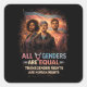 Three diverse figures stand before the transgender pride flag, declaring unity and equal rights for all genders.