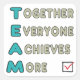 As cartas no TEAM soletram "Juntos Todos Atingem Mais" com uma carta inicial destacada criando uma mensagem TEAM para inspirá-los ao seu redor. Mais um tique na caixa. Agora é hora de um trabalho em equipe!
