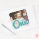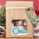 Turquesa Azul Grande E Ousado Um Esboço de Caligrafia, Favor Moderno e Simples para Foto de Aniversário de 1 Ano do Menino / Selo de Envelope.