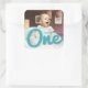 Adesivo Quadrado Esboço Azul Um Menino Foto Favor de Aniversário de