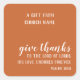 Adesivo Quadrado Escritura do presente de Ação de Graças Laranja Qu