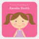 Adesivo Quadrado Escute-me como a garota Brunette Ponytails Bookpla