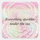 Uma design com sereia, uma sereia, com cores no arco-íris, com um ditado fofo: "Tudo brilha sob o oceano"