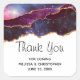 Obrigado de casamento você cola com um design abstrato com camadas azuis e roxas com fitas de folha de ouro falsas no meio.