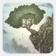 Uma árvore cresce na borda de uma montanha, nuvens acima e nuvens abaixo. Resistindo à gravidade e à erosão, a árvore espalha seus membros em direção ao céu, torcendo para agarrar a impossível esperança de vida no ar acima da rocha. Por Paxdomino