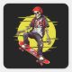 Um design surpreendente com um esqueleto vestido com roupas de rua coloridas e bandana vermelha, andando de skate. Perfeito para skatistas e amantes de skate.