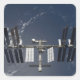 A Estação Espacial Internacional, recuada por uma Terra azul e branca.