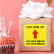 Este rótulo de aviso diz "Este lado para cima" e — quando virado para baixo— "Outro Lado para cima!" Use-o para tornar qualquer objeto comum engraçado ou para o transporte real.