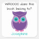 Este Livro Pertence A Autocolantes De Coruja Roxo Personalizados. Marque seus livros ou outros suprimentos escolares com esses adesivos personalizados e divertidos. Personalize para dizer o nome da criança. Font diz "A quem pertence este livro?" Editar texto para personalizar e usar para rotular seus suprimentos escolares, livros da biblioteca residencial ou outros itens pessoais. Coruja branca, roxa e rosa com texto preto e branco. Cartazes de coroa.