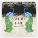 Adesivo Quadrado Estilo Art Deco Pavão Preto Salve Data Selo