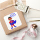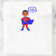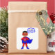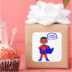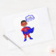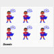 Com este pequeno super-herói por perto, não há necessidade de se preocupar. Nosso herói está vestindo uma legal fantasia vermelha e azul. Suas mãos sentam-se em seus quadris, para mostrar que ele está pronto para ação, enquanto sua capa azul sopra no vento. Que inspiração este personagem de desenho animado é para o super-herói da sua família.