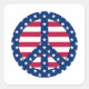Símbolo de paz vermelho, branco e azul com estrelas e faixas.