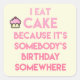 Adesivo Quadrado Eu como bolo! Citação engraçada