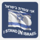 Não fique apenas com Israel; fique em Israel. Possui uma bandeira israelense. O texto em inglês abaixo da bandeira diz, EU FICO EM ISRAEL." O texto hebraico acima da bandeira diz, "Ani omedet b'Yisrael" (א נ ע ו מ ד ת י ב י ש ר א ל). Venha para casa, faça aliyah. Junte-se àqueles que eram nasceres aqui e àqueles que vieram para casa. Não há mais maneira de mostrar o vosso apoio a Israel do que de se tornarem cidadãos e viverem aqui.