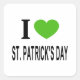 Adesivo Quadrado Eu ❤️ RUAS. PATRICKS DAY com coração verde