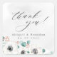 Moderna cor aquática Eucalyptus verde e anêmona floral em fundo de cinza leve, obrigado de moda que você escreve com nomes de casais e data de casamento, elegante e na moda, obrigado excelente você favorece adesivos para casamento rústico, casamento botânico e casamento de praia em primavera e verão. Ver todas as peças correspondentes na coleção