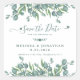 Convide amigos e família para o seu casamento com este casamento moderno de eucalipto verde salvem os adesivos de data. Personalize com nomes e data. Estes adesivos de casamento botânicos únicos são perfeitos para selos de envelopes, ou salvam presentes e favores de datas. COPYRIGHT © 2020 Judy Burrows, Black Dog Art - Todos Os Direitos Reservados. Eucalyptus Greenery Sage Weding The Date Square Sticker