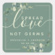 Esta design moderna diz que espalhou amor não germes na tipografia da moda rodeada por folhas de eucalipto. Personalize com seus nomes e data de casamento.