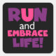 Se você gosta de correr, correr 5Ks, 10Ks, meia maratona, ou maratonas, você vai adorar este design de texto colorido em roxo e rosa que lê Run and Embrace Life!