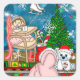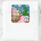 Adesivo Quadrado Exibição da Janela de Natal Nostálgica desenhada à