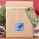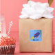 Um adesivo divertido para os rapazes. Um foguete azul com sotaques vermelhos e verdes a explodir no espaço. Céu azul e estrelas pequenas.