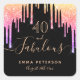Uma moda e um aniversário de 40 anos glamouroso. Um fundo preto clássico, decorado com pingos de brilho falso e colorido do arco-íris, pingando tinta, parece roxo, rosa e ouro rosa. Com o texto: 40 e fabuloso. Personalize e adicione um nome e uma data. Data de nascimento ou data da festa. Texto colorido do ouro. A palavra Fabuloso é escrita com um moderno estilo escrito à mão com traços.