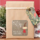 Adesivo/Eselador de Envelope de Festa de Natal com Elfo Mágico Fofo e Espirais, Fundo Marrom de Kraft Falso 'Feliz Natal'.