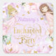 Adesivo Quadrado Fada de jardim encantada, praça de aniversário