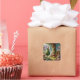 Este adesivo tem uma ilustração da aquarela ai de uma fada sentada numa alcachofra, ao lado de uma grande árvore, aldeia branca, flores e borboletas.