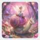 A beautiful fairy garden scene with a fairy sitting on a snail