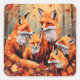 Adesivo Quadrado Família Adorável de Raposa Vermelha no outono