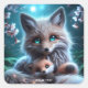 Adesivo Quadrado Fantasy Cute Fox Segurando Plushie
