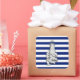 Um cromo prateado como design de farol em uma decoração de listras azuis marinho. Um presente náutico moderno. Use o link "Perguntar a este Designer" para entrar em contato conosco com suas solicitações especiais de design ou para obter assistência com qualquer das suas necessidades de personalização.