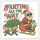 Make spirits bright (and stinky!) with this hilarious holiday sticker featuring Santa letting one rip in his sleigh—right into the path of two unfortunate elves! With bold retro-style artwork and the phrase “Farting All the Way,” this design is perfect for pranksters, white elephant gifts, or anyone who prefers their Christmas with a dash of cheeky humor.