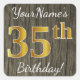 Adesivo Quadrado Faux Wood, Faux Dourado 35.o aniversário + nome pe