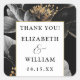Esses adesivos de agradecimento de casamento florais preto e branco elegantes podem ser personalizados com suas informações em tipografia moderna. Projetado por Thisisnotme©