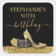 Selo Personalizado de Envelope Personalizado Elegante e Chic Modern Dourado e Preto Feliz Aniversário ou Etiquetas Favoráveis com Calçados de Alto Heel Dourado Faux Glitter e Estiletto de Caligrafia de Nome Personalizado Cursivo.