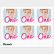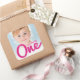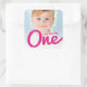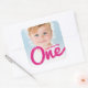 Fuchsia Rosa Choque Grande e Ousada Um Sketch de Caligrafia, Moderno e Simples Adesivo para Favor de Foto de Aniversário de 1 Ano da Menina / Selo de Envelope.