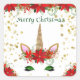 Adesivo Quadrado Favoritos para festas Verdes da Unicórn de Poinset