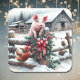 Adesivo Quadrado Fazenda de Natal de Suíno e Galinha